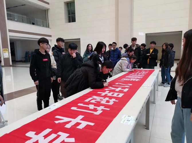 3月6日下午,图书馆在阳光大厅举办了“开学季告别懒惰,21天早起打卡学习”横幅签名活动。此次活动是“不占座系统”开学季21天学习打卡活动的启动仪式。即日起到3月26日止,同学们参与活动,坚持21天即可领取奖品。