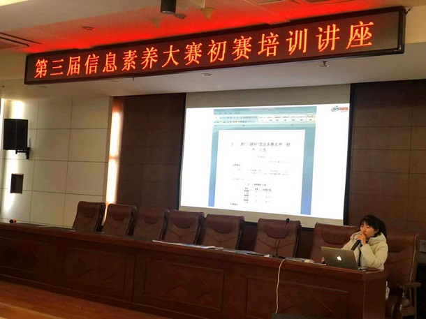 为提升同学们信息素养、提高信息素养大赛的参与度,2019年11月27日下午,图书馆联合北京福卡斯特信息技术有限公司(简称EPS)在图书馆五楼展播厅为全校同学举办了第三届全国财经高校大学生信息素养大赛初赛赛前培训讲座。共有130余名同学参加此次讲座。