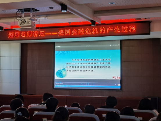 10月24日,图书馆联合金融系在五楼的电子资源培训室举办了名师讲座视频学习活动,播放的视频为南开大学韩强教授带来的《美国金融危机的产生过程》。该视频收录于图书馆主页资源中的超星视频网。