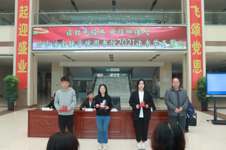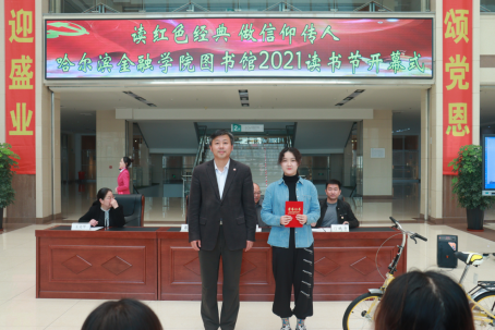 仪式由院团委副书记门晓宇主持。首先,图书馆副馆长王文平介绍了哈尔滨金融学院2021读书节暨书香金院“阳光悦读”系列活动方案。本次读书节主题为“读红色经典,做信仰传人”, 在一个月的时间里,共有搜书比赛、读书分享会、党史知识竞赛、读书观影等九项丰富多彩的活动,并期待全院读者的参与。
