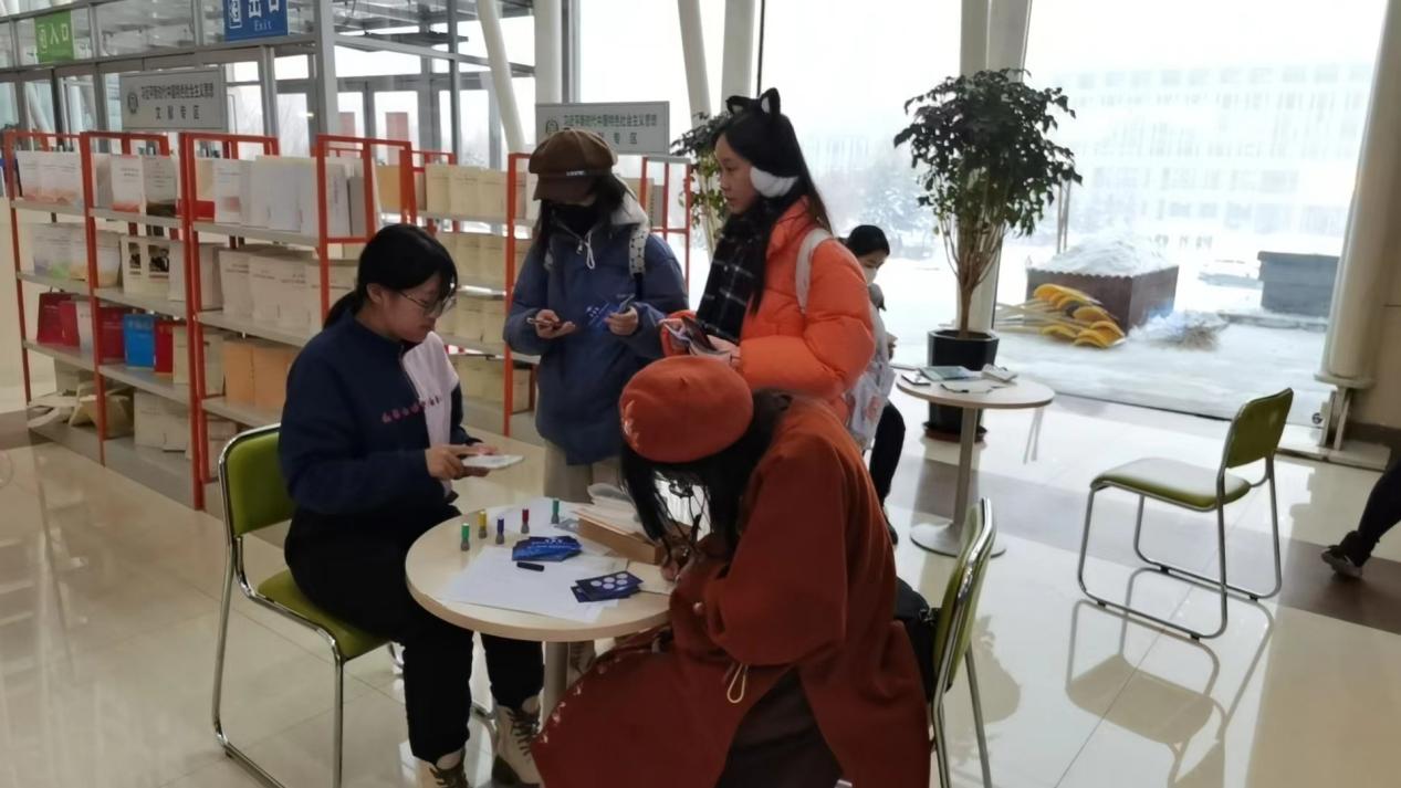 11月8日下午,在图书馆二楼阳光大厅举办了“绽放青春活力 逐梦扬帆远航——集章打卡活动”。本次活动面向全院师生,由图书馆主办,读者协会协办,博看数据库技术支持,旨在让读者熟悉馆藏资源,提高资源利用率。