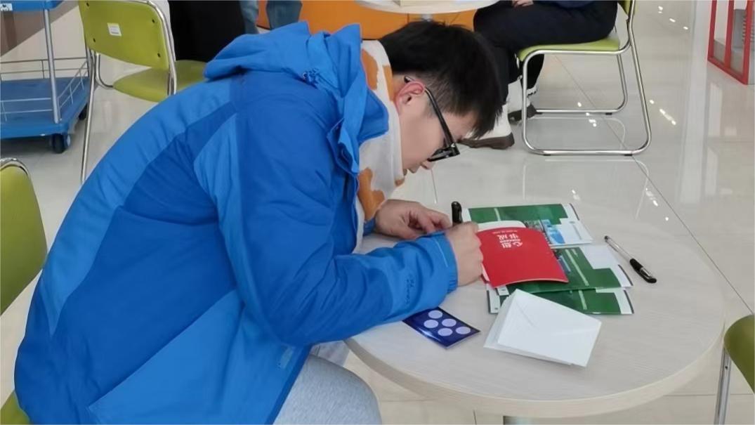参与者完成五项任务,即可带着集章卡到大厅获取相应印章。五项任务分别为:关注图书馆公众号、借阅纸质图书、用手机获取博看电子书、手写许愿卡和活动手牌朋友圈集赞。同学们热情参与,活动现场气氛活跃,不仅熟悉了图书馆的馆内资源,还了解了博看书苑、公众号内嵌数据库等移动资源。