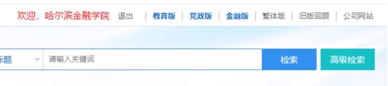 2.点击首页右上角“登录”按钮,进入页面后点击“用户登录”,输入所获取的个人校外访问账号及密码,再点击“登录”,首页右上角显示“哈尔滨金融学院”即登陆成功。