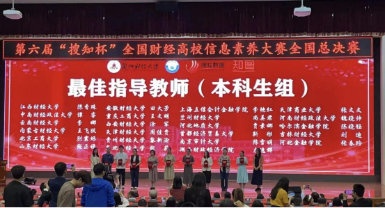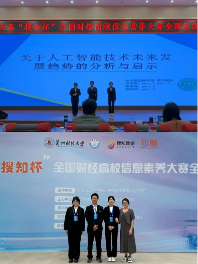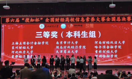 2024年5月25—26日,由教育部高等学校图书情报工作指导委员会指导,全国财经高校图书情报专业委员会主办,兰州财经大学承办,北京搜知数据科技有限公司提供技术支持的第六届“搜知杯”全国财经高校信息素养大赛总决赛在兰州财经大学举行。共有来自中南财经政法大学、东北财经大学、江西财经大学等38所国内知名财经高校的59支队伍参加比赛,其中本科生组38支、研究生组21支。经过激烈角逐,我校代表队(成员:计算机与数学学院冷冬雪、管理学院陈紫逸、金融与贸易学院杨德轩)获得本科生组三等奖,图书馆陈晓钰老师获得最佳指导教师奖,我校荣获组织奖,为历届参赛以来取得的最好成绩。