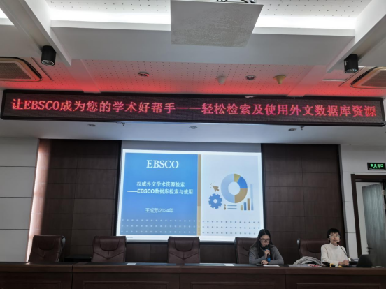 为有效提高外文文献资源利用率,图书馆联合教务处于2024年10月23日下午14:00成功开展了“让EBSCO成为您的学术好帮手——轻松检索及使用外文数据库资源”专题培训讲座。活动由图书馆陈晓钰主持,商英学院专任教师及部分学生代表共百余人参加。