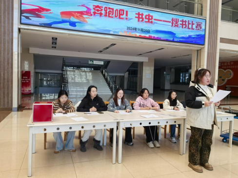 11月20日下午,由图书馆组织开展的“奔跑吧!书虫”搜书比赛在图书馆二楼大厅热烈开赛,共有来自全校的9支代表队、27名选手参赛。