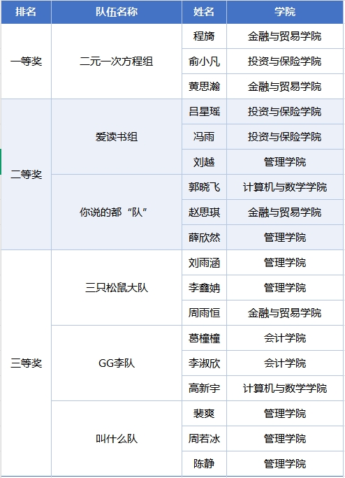 此次比赛,旨在激发师生读书热情,熟悉馆藏分布、了解图书分类法和掌握RFID智慧图书管理系统的检索技巧,共有来自全校16支代表队48名选手参赛。通过团队协作和速度比拼,最后,程旖、俞小凡、黄思瀚组成的“二元一次方程组”获得第一名。具体获奖名单如下: