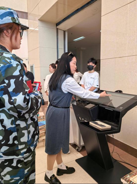此次入馆教育聚焦新生实际需求,采用“理论讲解+实地导览+实际操作”三维模式。理论环节中,图书馆陈晓钰老师围绕图书馆馆藏分布、借阅规则、电子资源检索方法等核心内容,通过PPT演示与案例讲解,清晰解读图书借还流程、自习区预约方式等,帮助新生建立系统认知;实地导览阶段,图书馆老师们分组带领新生参观,对照现场发放的《图书馆使用指南》手册,介绍图书分类架位、自助借还设备、研讨室预约使用等实用场景;实际操作环节则针对“图书自助借还流程”,图书馆老师手把手指导操作方法,确保知识传递更直观、更高效。
