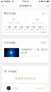 下载“学习通” App,输入邀请码“ ”进入图书馆首页,点击“30分钟打卡”参与活动。