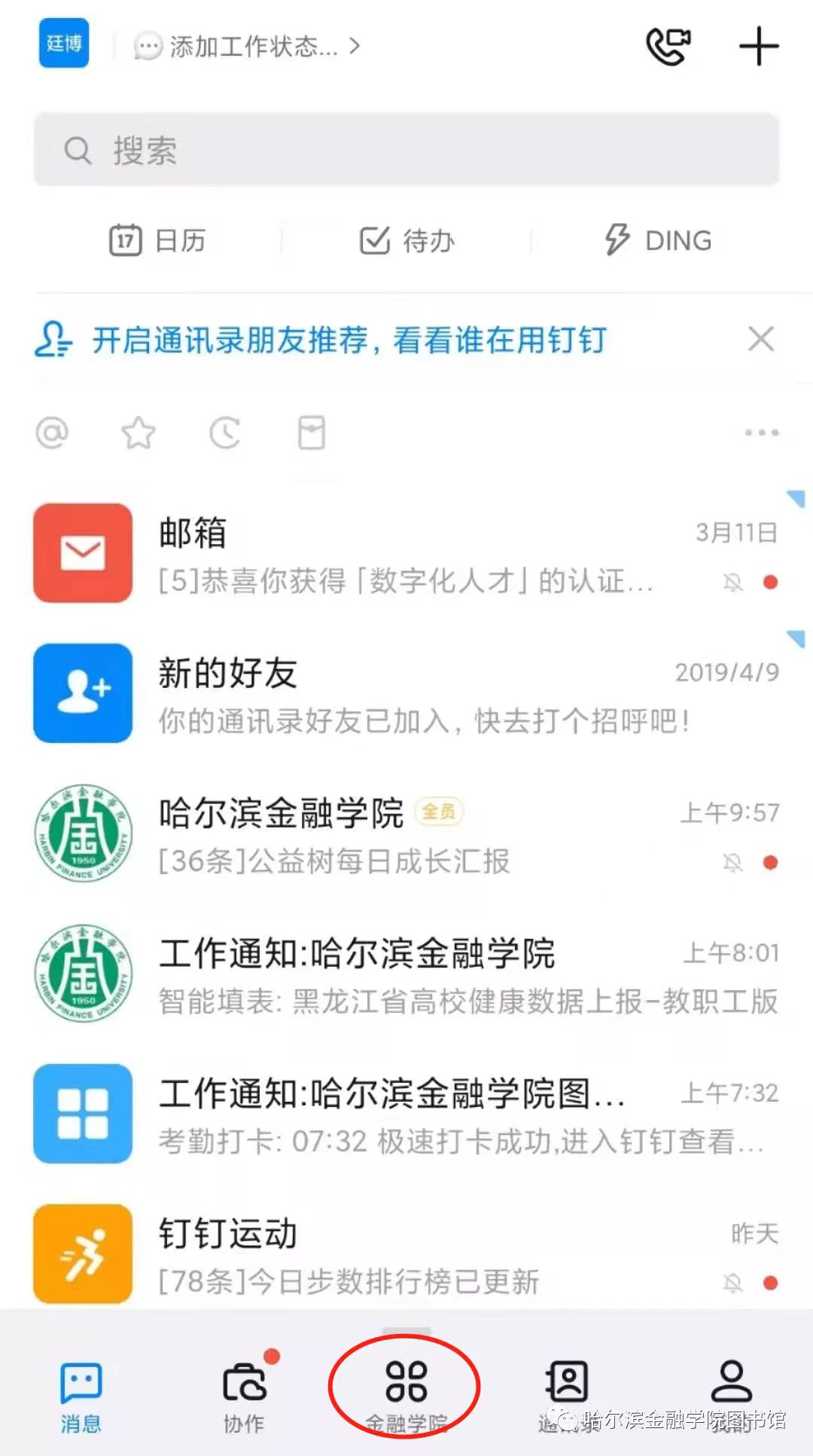 1.登录钉钉,进入金融学院模块