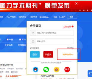3.进入登录界面后,输入个人统一身份平台账号密码,学生账号为学号,学生账号初始密码为Jr+身份证号后六位;教工账号为工号,教工账号初始密码为个人身份证号后6位,更改过密码的读者使用改后的密码。登录成功后,知网主页右上角登录信息会显示为:哈尔滨金融学院