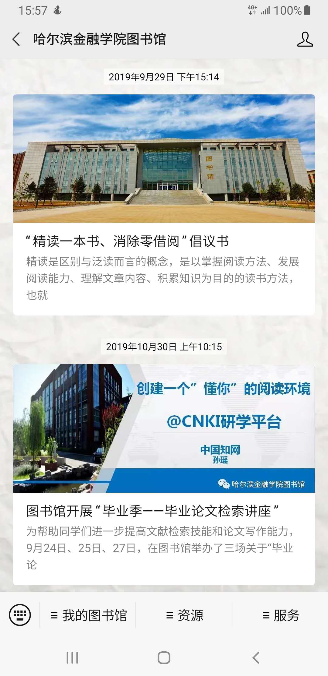 为更好地服务读者,完成了图书馆“微信服务平台”的搭建与调试工作,2019年9月正式投入使用。此项工作的完成,可通过微服务的方式为读者提供服务,如个性化的图书推荐、图书查询、个人信息查询、读者服务提醒等。将能提供微服务的数字资源嵌入图书馆“微信服务平台”中,使图书馆的服务将更加便捷高效。