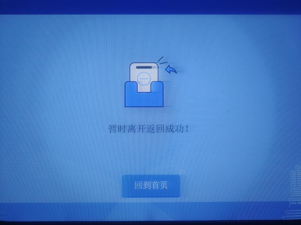 (11) 点击确定暂离按钮。显示暂离成功,并且提示返回时间。