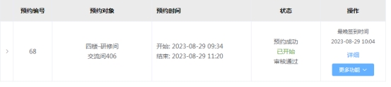 (10) 使用完成后,组长同样可选择在步骤8的页面中,点击操作-更多功能-提前结束,停止研讨室的使用,释放资源。完成研讨间的使用。