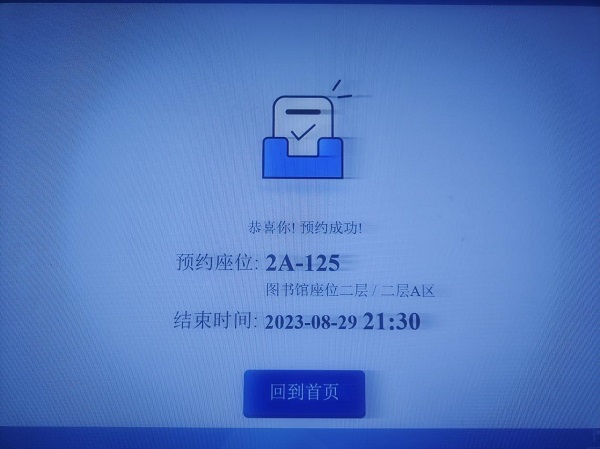 (6) 提示预约成功,显示预约的座位、使用日期、使用时间。